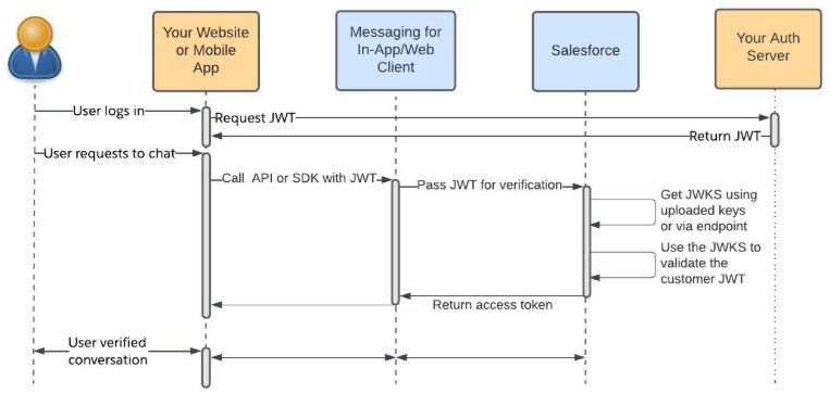 This section illustrates secure API integration patterns using OAuth 2.0 and JWT-based authentication. It emphasizes scope restriction, secure credential storage, and the use of dedicated integration users.
