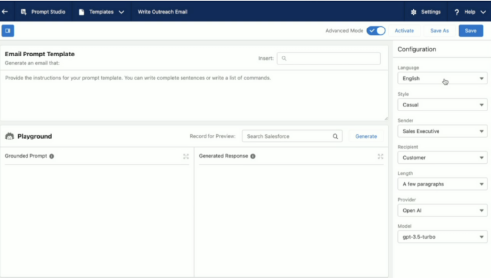 Wondering what kind of magic admins can conjure up? Well, here’s the scoop: Prompt Builder is rolling out in a closed, paid pilot starting with our October Winter ’24 Release. And the first two exciting use cases we’re unleashing as part of this pilot are Email Generation and Field Generation.